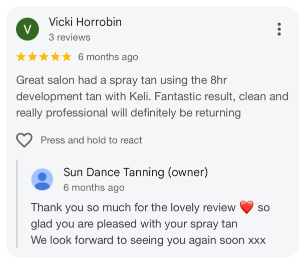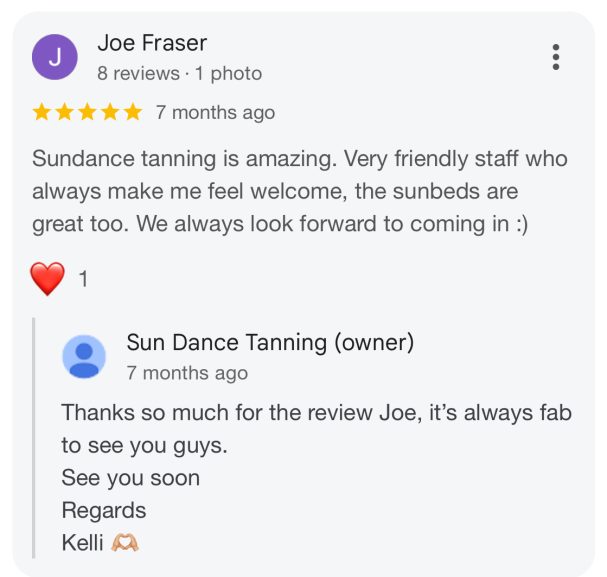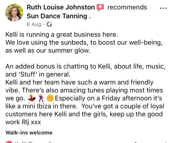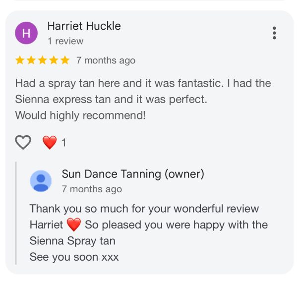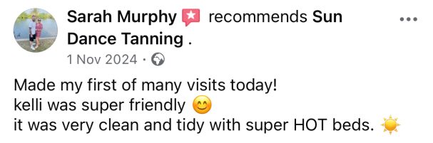 At Sun Dance, nothing makes us prouder than seeing our clients leave with a smile (and a glow). From first-timers to regulars, your kind words mean the world to us — they’re the reason we do what we do every single day.